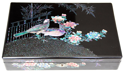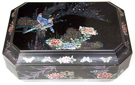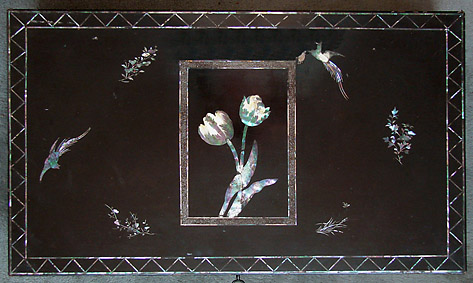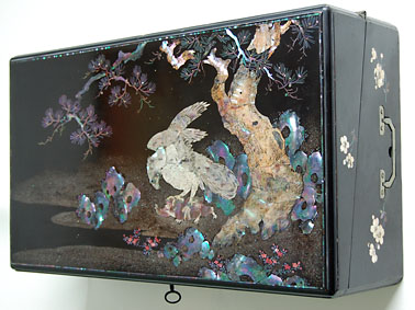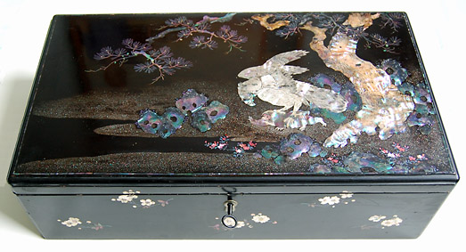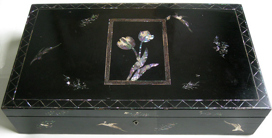 Writing box , Nagasaki lacquer with design in mother of pearl.